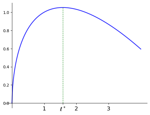 ax.plot((xstar, xstar), (0, f(xstar)), 'k--', lw=1, alpha=0.8)