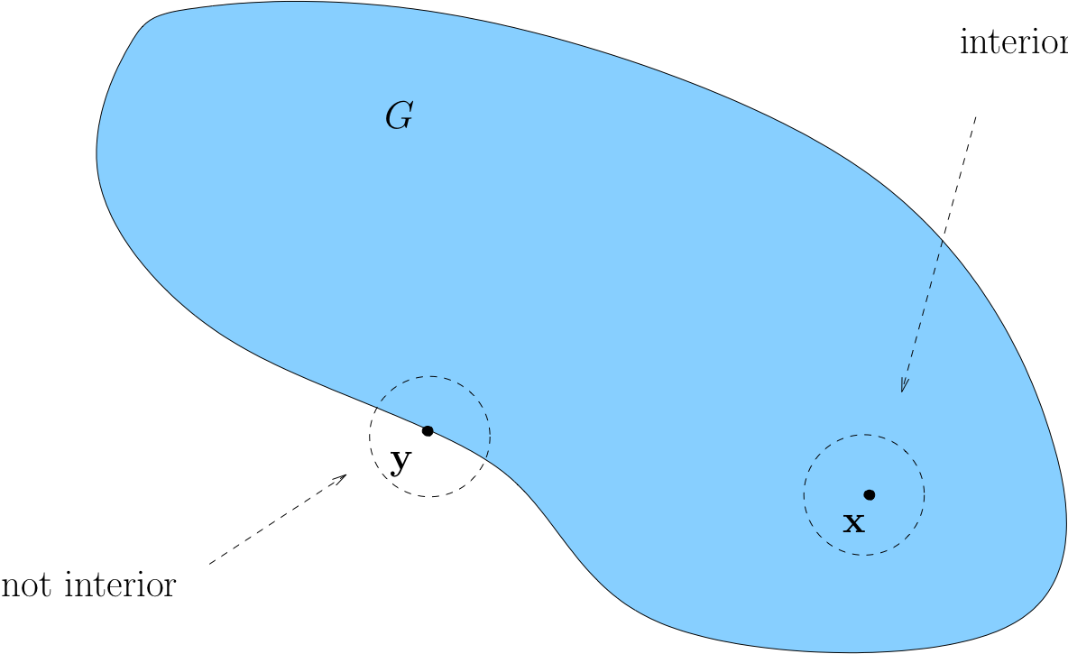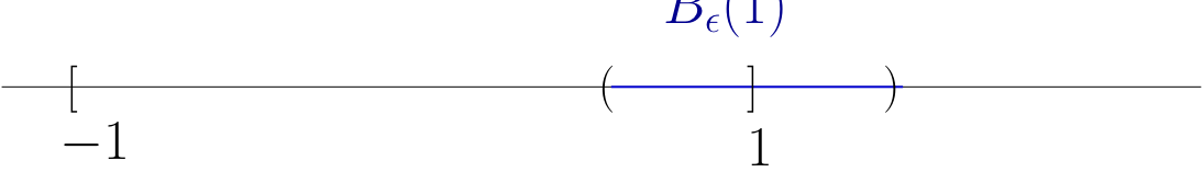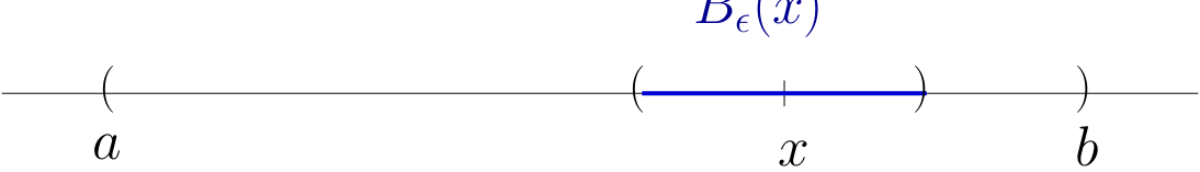 Point \(x \in \mathbb{R}\) is called interior to \([a, b]\) if \(a < x < b\)