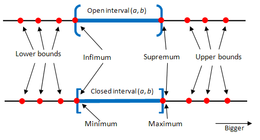 Some textbooks allow all sets to have a supremum and infimum, even if they are not bounded. This is achieved by extending the set of real numbers with \(\{-\infty,\infty\}\)
