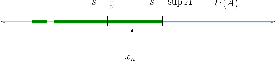 Let \(A\) be any set bounded above and let \(s = \sup A\). There exists a sequence \(\{x_n\}\) in \(A\) with \(x_n \to s\).
