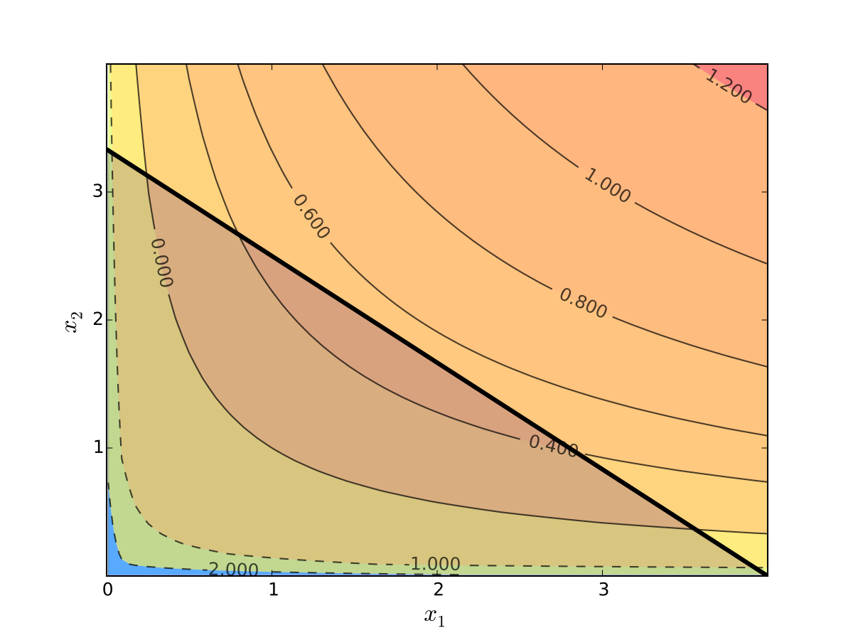 Fig. 68 Utility max for \(p_1=1\), \(p_2 = 1.2\), \(m=4\), \(\alpha=0.4\), \(\beta=0.5\)#