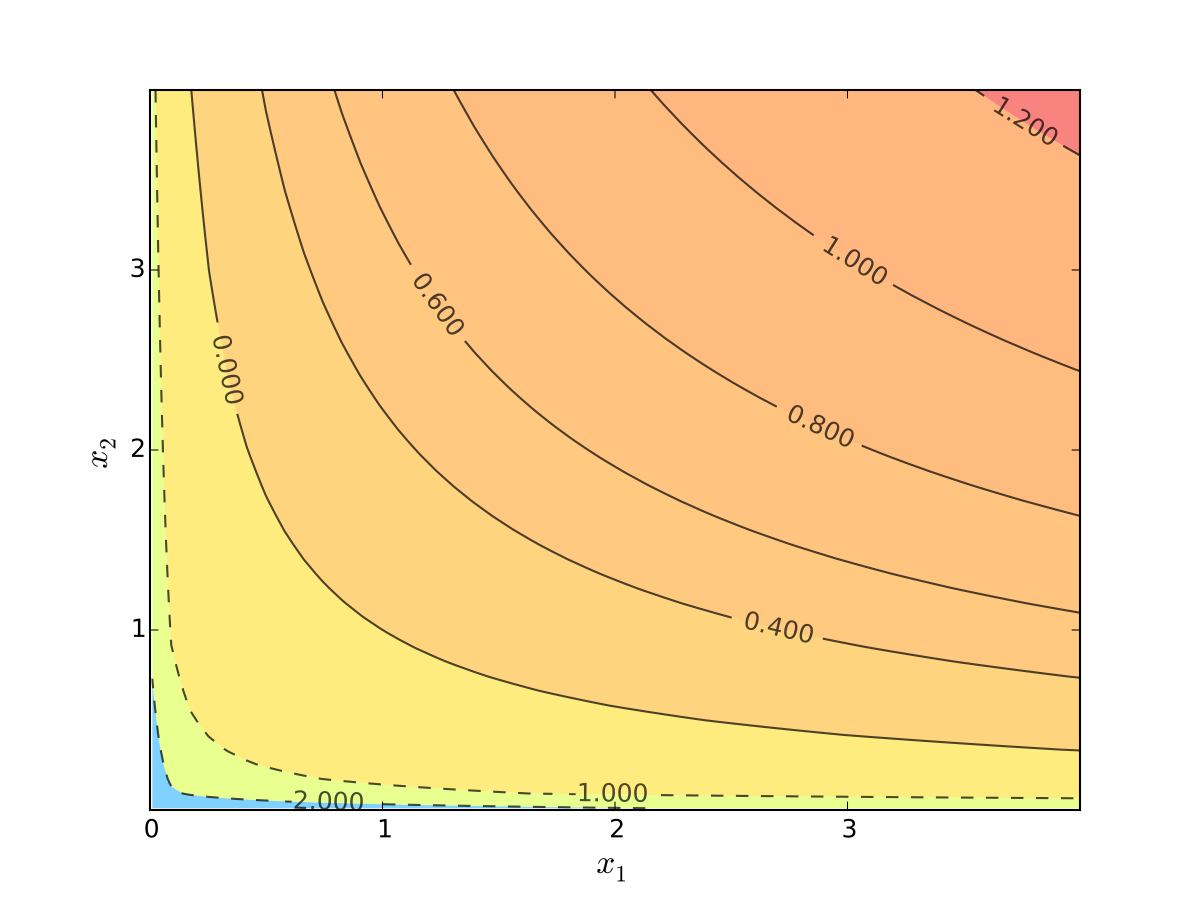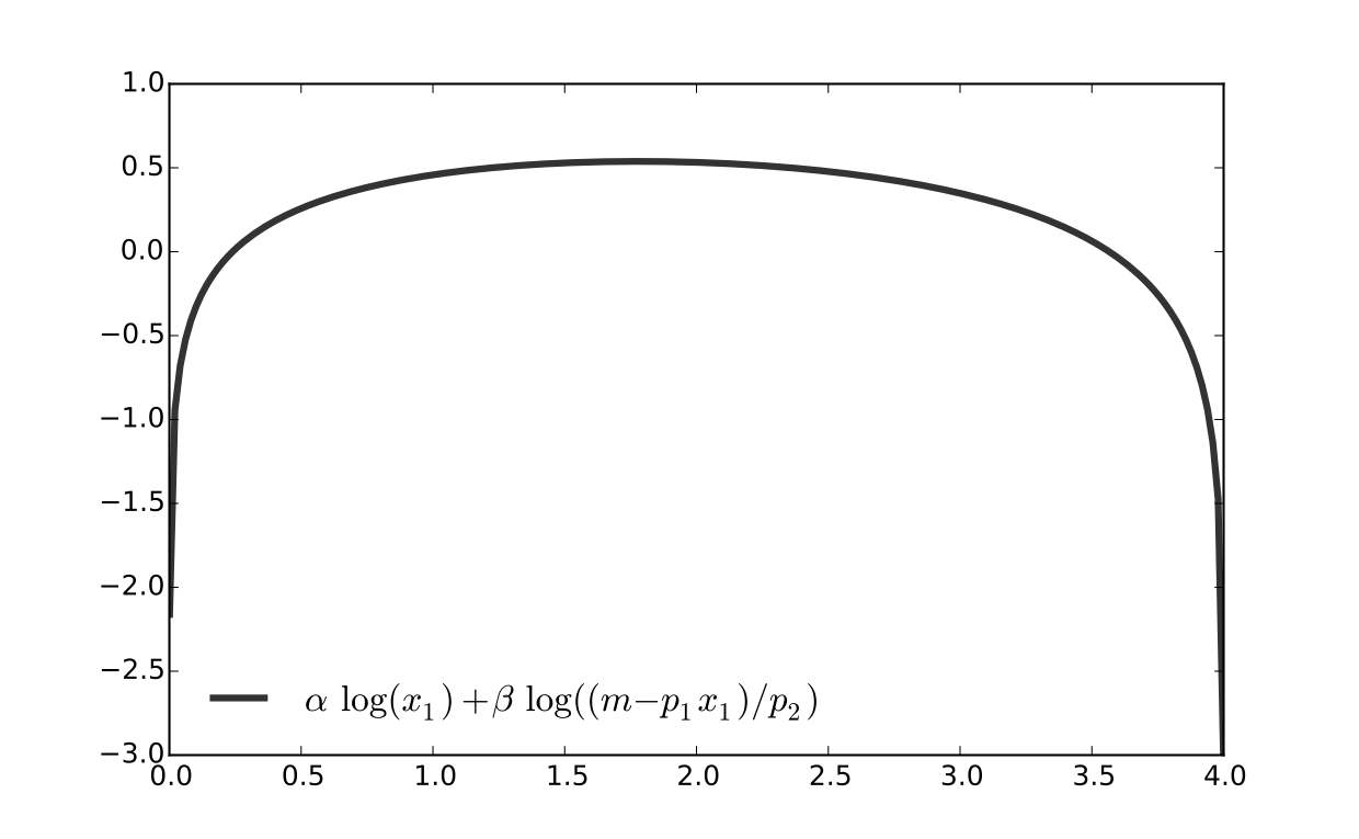 let \(u(x_1, x_2) = \alpha \log(x_1) + \beta \log(x_2)\), \(\alpha>0\), \(\beta>0\)