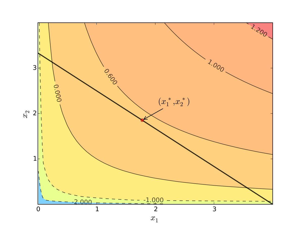 Also need to respect \(g(x_1, x_2) = 0\)