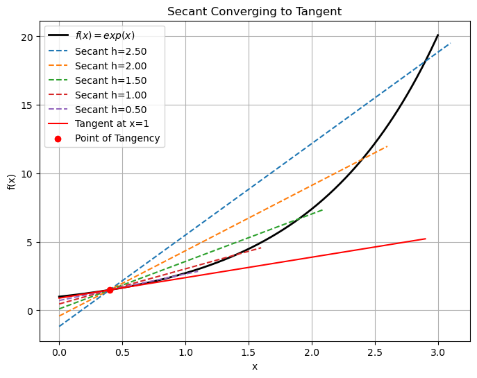 # Plot convergence of secant to tangent