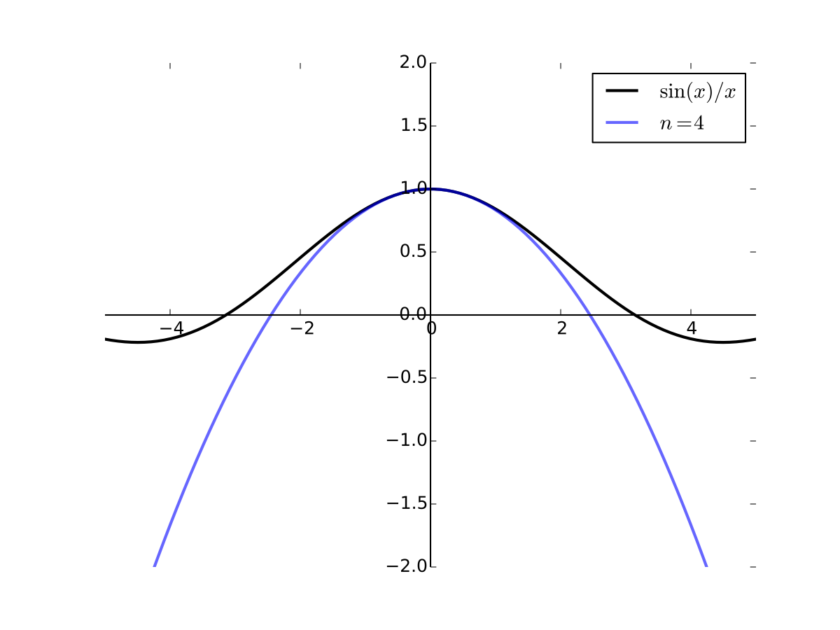 Fig. 27 4th order Taylor series for \(f(x) = \sin(x)/x\) at 0#