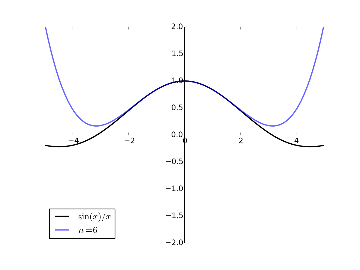 Fig. 28 6th order Taylor series for \(f(x) = \sin(x)/x\) at 0#