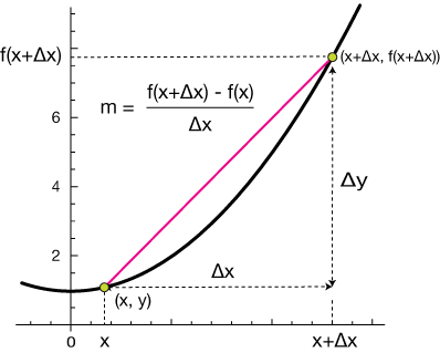 Recall that for univariate functions \(f: \mathbb{R} \to \mathbb{R}\) we defined the derivative at the point \(x\), if it exists, to be the limit of the slope of the secant line as the step size \(\Delta x\) approaches zero