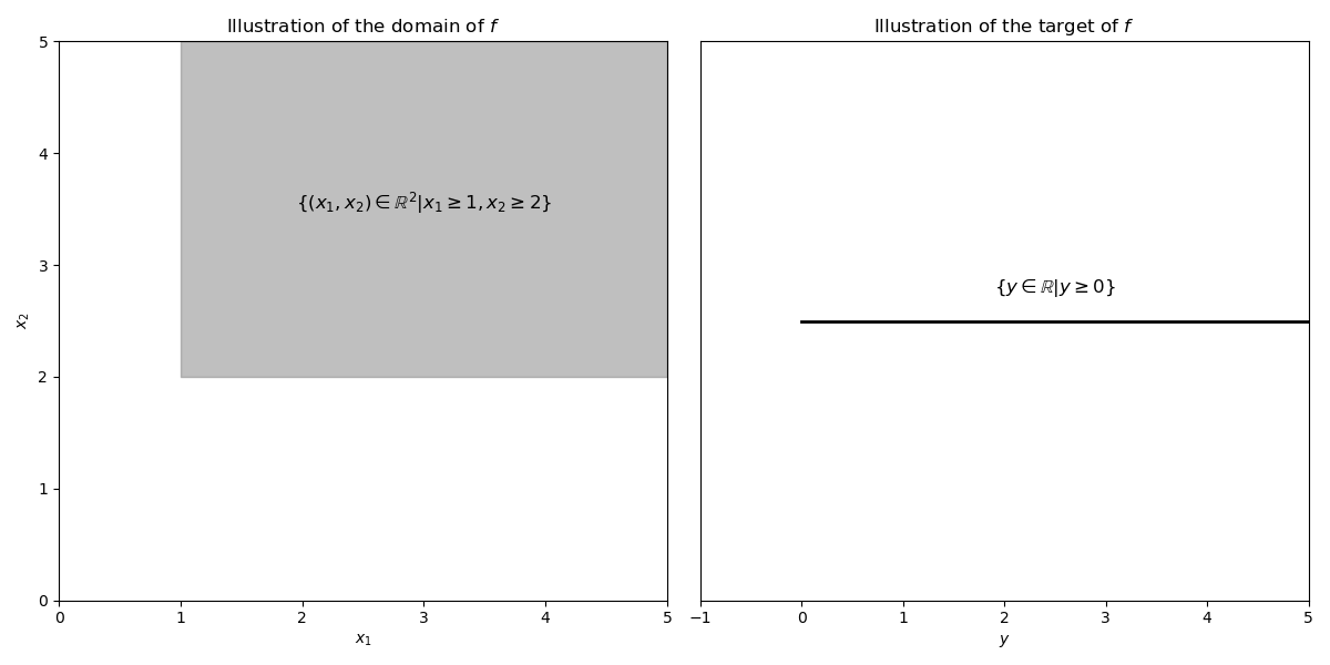 the domain of \(f\) is \(\left\{ (x_1,x_2) \in \mathbb{R}^{2} :\; x_1 \geq 1, x_2 \geq 2 \right\}\).