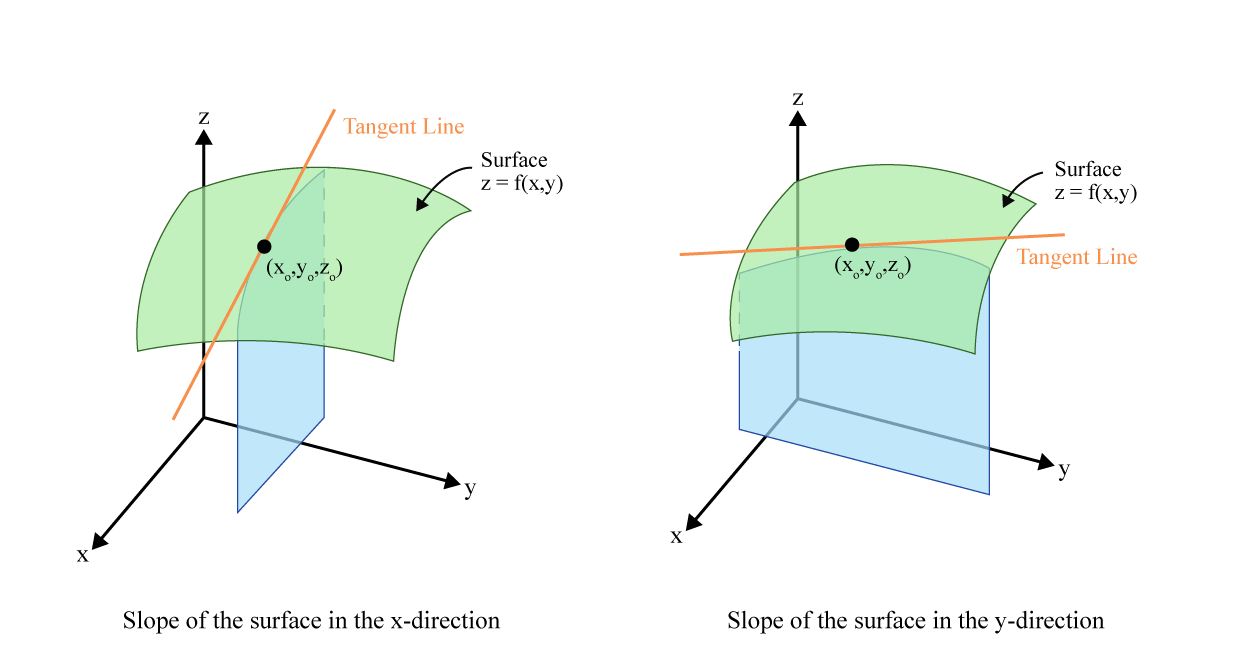 Note that the partial derivative, \(\frac{\partial f\left(\mathbf{x}\right)}{\partial x_k}\), is a single-real-valued multivariate function itself, as it in general depend on all the independent variables. Like simple derivatives, partial derivatives are computed at a point in the domain of the function in \(\mathbb{R}^n\).