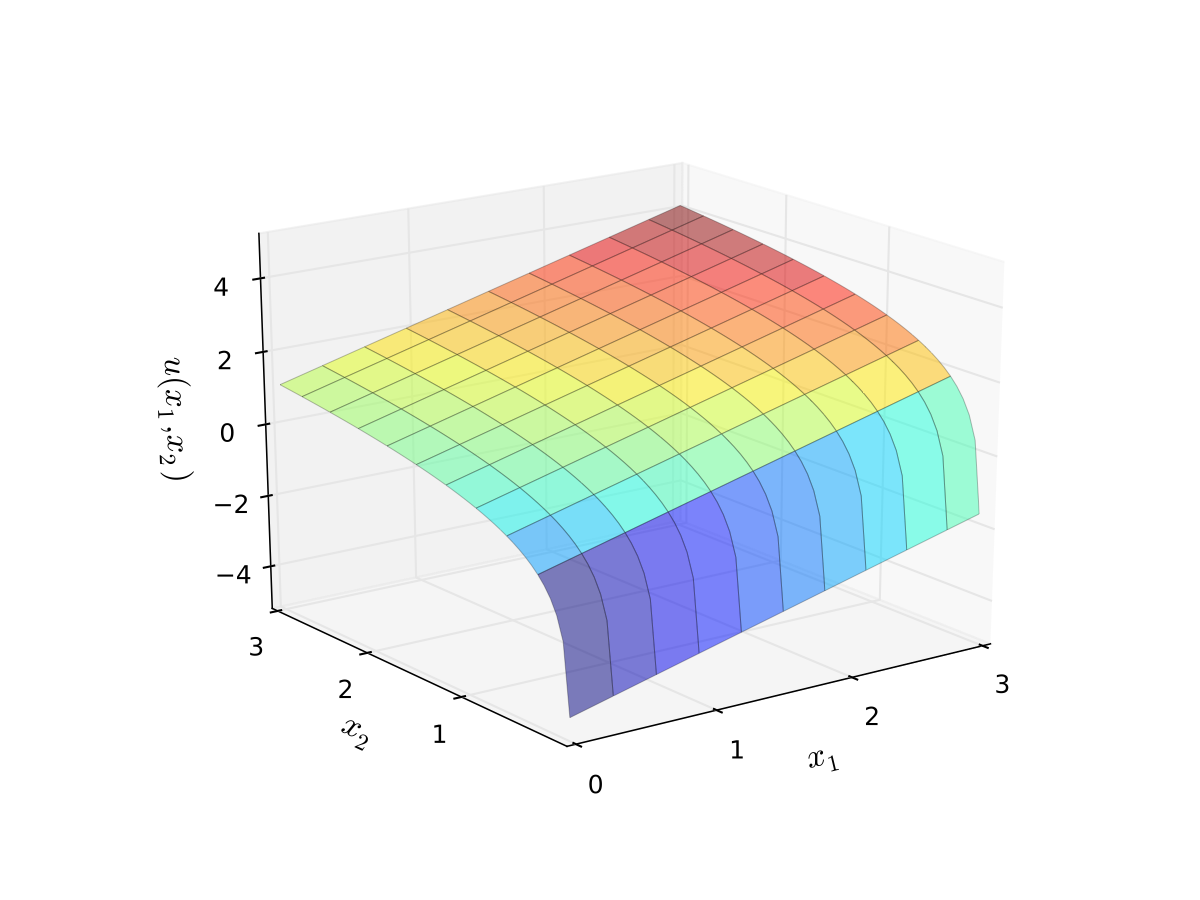 Consider Cobb-Douglas production function \(f: \mathbb{R}^2 \to \mathbb{R}\) given by